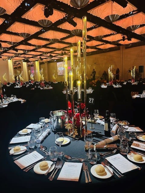 Add this unique gold spiral candelabra to your wedding or event for a luxe look. Shown here with 8 LED taper candles. Price includes LED candles.