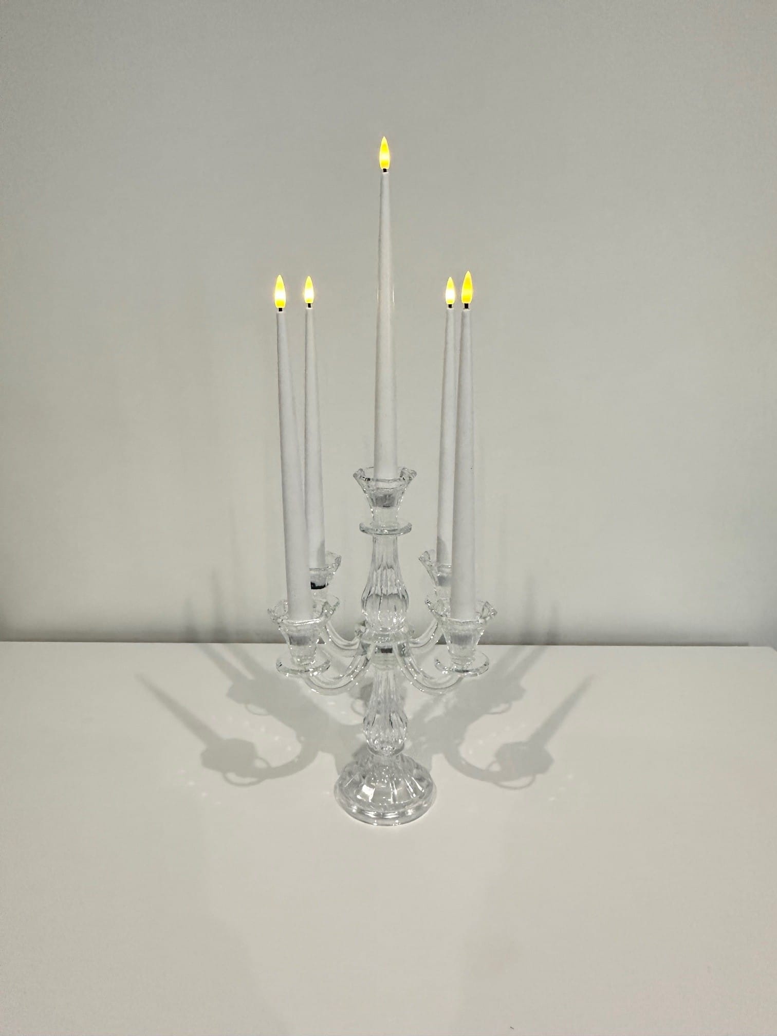 Bring sparkle and elegance to your event or wedding with our stunning crystal cut candelabra. Perfect for weddings, dinners and special occasions. It beautifully reflects candlelight, creating a warm luxurious ambiance.