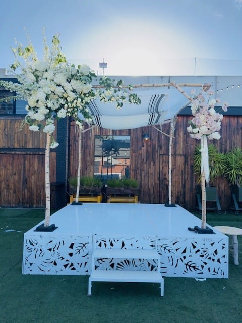 Our new Laser Cut Wedding Stage is perfect for our Chuppahs and canopies to add some extra height.