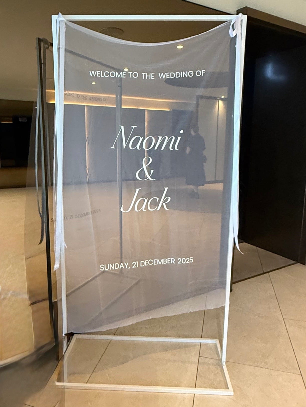 This tall white signage stand is great for seating charts or as welcome signage.